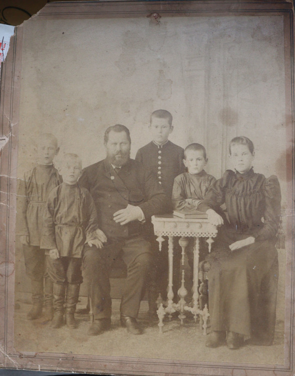 Василий Андреевич Попов с детьми. Слева направо: Андрюша, Петя, Алеша, Сережа, Наташа