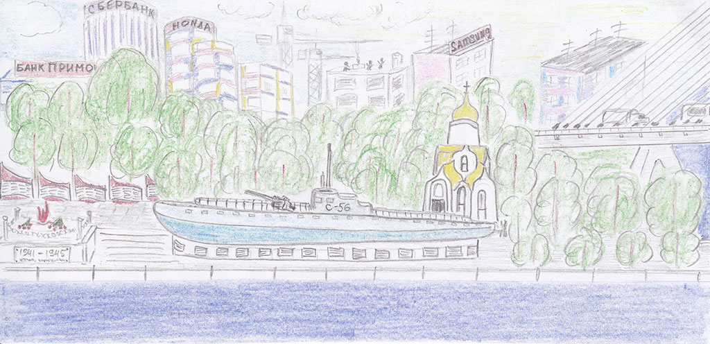 Прогуливаясь дальше по Корабельной набережной, я вышел к подводной лодке-музею. Если быть точнее, и как указано на табличке: средняя дизель-электрическая боевая подводная лодка С-56, участвующая в сражениях на Северном флоте во время Великой Отечественной войны 1942–1944 гг.