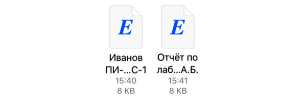 Получаем письмо и рассматриваем его. Название второго вложения мало что нам сообщает. Сколько мы получим таких «отчётов по лабораторной…»? Хотя бы по одной дисциплине. Хотя бы за один семестр. Хотя бы от одного потока в 200 студентов…