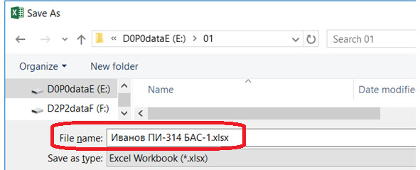 Надеюсь, читателям уже приходилось сохранять файлы. Здесь всё просто и знакомо – кроме одной незначительнй детали. Нам нужно не просто дать КАКОЕ-НИБУДЬ название или не глядя согласиться с безликим Book1.xlsx или Книга1.xlsx. Нужно выбрать КОРОТКОЕ ИНФОРМАТИВНОЕ название.