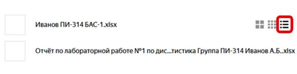 Выберем другой формат отображения – подробный список. Для этого в правой верхней части окна имеется иконка в форме списка – см. рисунок.