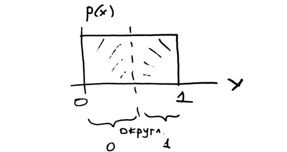 Мы просто генерируем столбец чисел и определяем вероятность того, что выпадет орёл. В нашем случае получилось значение 0,522. Мы как бы «бросали монетку» заданное количество раз. Генератор случайных чисел создаёт число от нуля до единицы. Эти числа имеют равномерное распределение, то есть у нас одинаковые шансы (вероятность) появления любого числа от нуля до единицы. Далее мы берём полученное число и используем функцию округления. Как вы знаете, обычно округляют по стандартному правилу. Если число меньше 0,5 – округляем в меньшую сторону и пишем 0. Если число больше 0,5 – округляем в большую сторону и пишем 1. Таким образом, мы половина чисел округляется до нуля, а другая половина чисел округляется до единицы. Если ровно 0,5 – то в большую сторону.