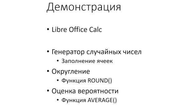 Проведём ещё один эксперимент. Нам предстоит как сгенерировать случайные числа в электронной таблице Libre Office Calc. Calc – это сокращение от слова «Калькулятор».