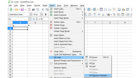 В верхнем меню выбираем Sheet – Fill Cells – Fill Random Number, см. рис.