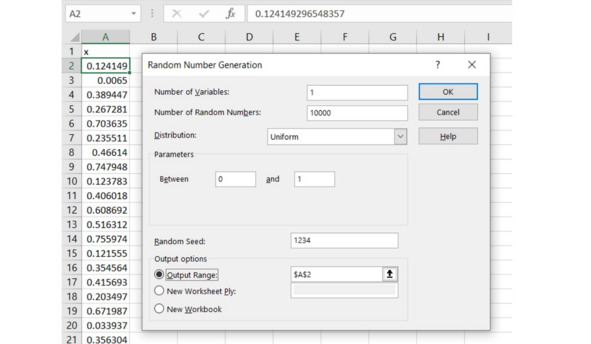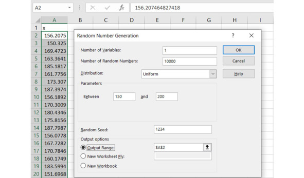 Запускаем генератор случайных чисел. В диалоговом окне указываем число переменных, см. рис. Напомним, что переменные в электронных таблицах и во многих других случаях располагаются по столбцам. Это имеет отношение к истории. Традиционно, задолго до появления компьютеров числа записывали в колонку. Внизу столбца подсчитать сумму. Вручную числа удобно складывать столбиком. Соответственно, и в компьютерах используется традиционное расположение данных. Оно интуитивно понятно.