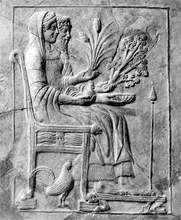 Аид и Персефона на троне в подземном царстве. Вотивный рельеф из терракоты из святилища богини в Локри-Эпицефири. Ок. 470 г. до н. э.