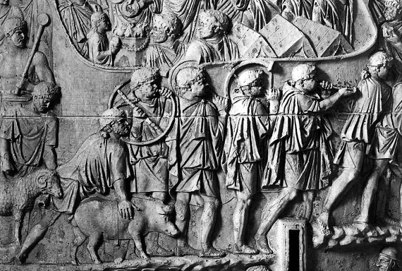 Погонщики побежали вперед на ближайший холм. Быстро выбитые оттуда, они бросаются к знаменам и манипулам и тем еще больше терроризуют и без того оробевших солдат. Другие предлагают образовать, ввиду близости лагеря, клинообразную колонну и таким образом быстро пробиться – в полной уверенности, что если некоторая часть из них и будет отрезана и уничтожена, зато остальные могут спастись; третьи советуют занять позицию на возвышенности и сообща разделить общую участь. Этого не одобряют старые солдаты, которые, как мы указали, отправились под особым знаменем вместе с когортами. И вот, ободрив друг друга, они под предводительством своего начальника – римского всадника Г. Требония – пробиваются сквозь неприятельские ряды и все до одного благополучно достигают лагеря. Примкнувшие к ним погонщики и всадники спаслись благодаря той же атаке этих храбрых солдат. Наоборот, те, которые заняли возвышенности, за отсутствием боевого опыта не выдержали принятого ими же самими плана – защищаться на высокой позиции, – равно как и не сумели усвоить себе ту стремительность и быстроту, которая на их глазах так помогала другим. Вместо этого они попытались вернуться в лагерь, причем попали на невыгодное место. Их центурионы, часть которых была переведена из низших рангов в других легионах в этот легион с повышением в ранге за храбрость, сражались с чрезвычайной доблестью, чтобы не потерять ранее приобретенной славы, и пали; зато часть солдат, воодушевленная их храбростью, заставила врага податься и, против ожидания, благополучно достигла лагеря; другая же часть была окружена варварами и погибла.