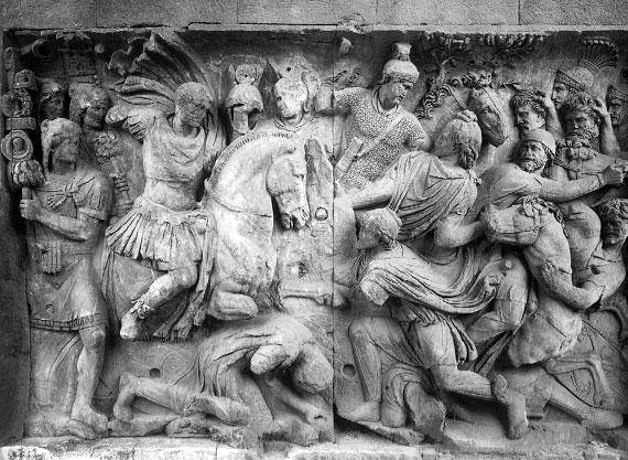 Высадившиеся с этих кораблей солдаты, числом около трехсот человек, шли в лагерь. Тут в надежде на добычу окружили их – сначала не в очень большом количестве – морины, которых Цезарь при своем отправлении в Британию оставил замиренными, и потребовали от наших положить оружие, если не хотят быть убитыми. Когда же те образовали каре и стали защищаться, на крик моринов сбежалось еще около шести тысяч человек. Получив об этом известие, Цезарь послал из лагеря своим на помощь всю конницу. Тем временем наши солдаты выдержали нападение неприятелей, в течение с лишком четырех часов очень храбро сражались и, потеряв лишь несколько человек ранеными, перебили много врагов. Но как только показалась наша конница, враги побросали оружие, бросились бежать, и много их было убито.