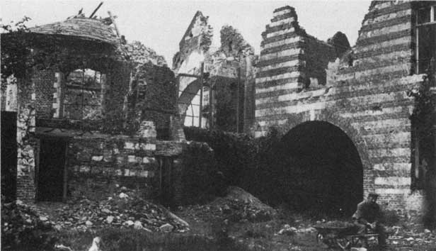 Части первого батальона вошли в парк замка. Из второго батальона только моя и пятая рота относительно в целом составе прошли огненный занавес. Мы продвигались по воронкам и развалинам домов к лощине на западном краю деревни. По дороге я поднял с земли каску, чтобы надеть ее на голову, – это я проделывал только в весьма опасных обстоятельствах. К моему удивлению, деревня Фаврёй оказалась совершенно мертва. По всем признакам, команда оставила участок обороны, так как над развалинами уже витал странный дух тревоги, свойственный в такие моменты покинутым хозяевами местам.