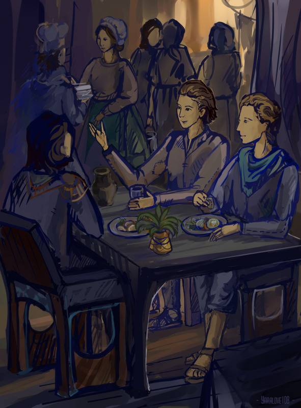 Что ж, сегодня нужно пустить корешок и понравиться тётушке. В большом хозяйстве постоянно есть текучка кадров и пара вакансий для хороших работяг всегда найдётся! А на самый худший случай мы в любой момент прикроемся ярлыком от короля, где чёрным по белому указано».. всякий чиновник обязан выполнять их указания..»