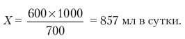 5000: 6 = 833 мл/сутки.