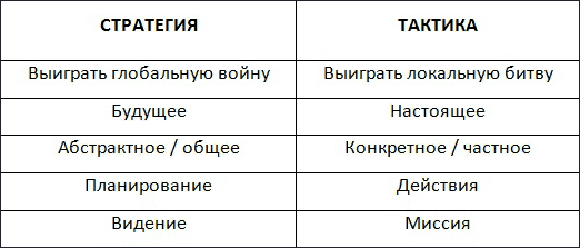 Таблица 3. Стратегия vs. Тактика.