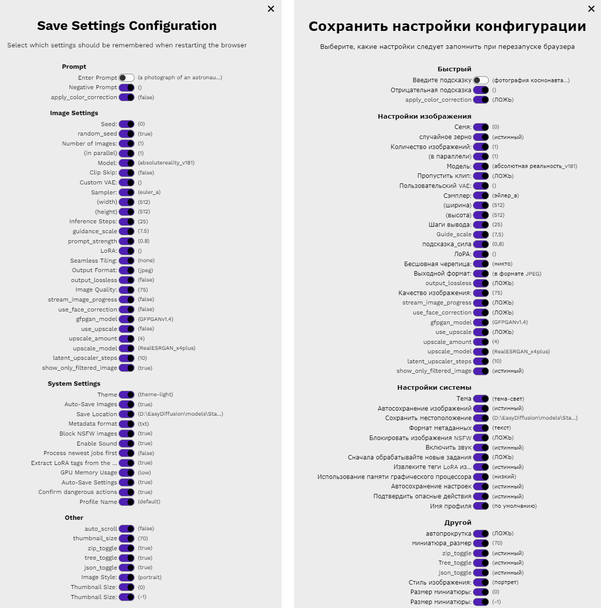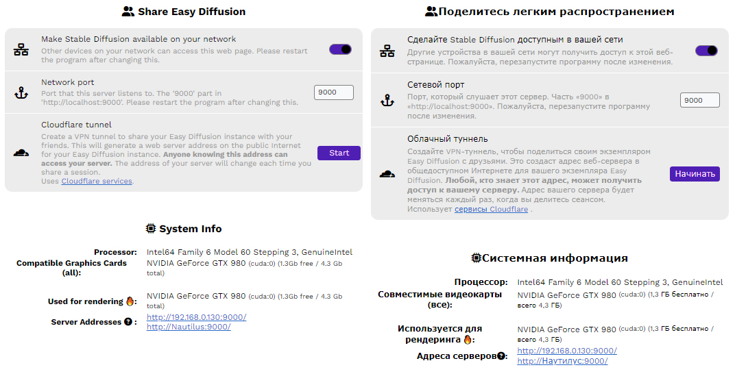 Три опции, располагающиеся выше, отвечают за сетевые настройки вашего приложения Easy Diffusion. Мы их не изменяем.