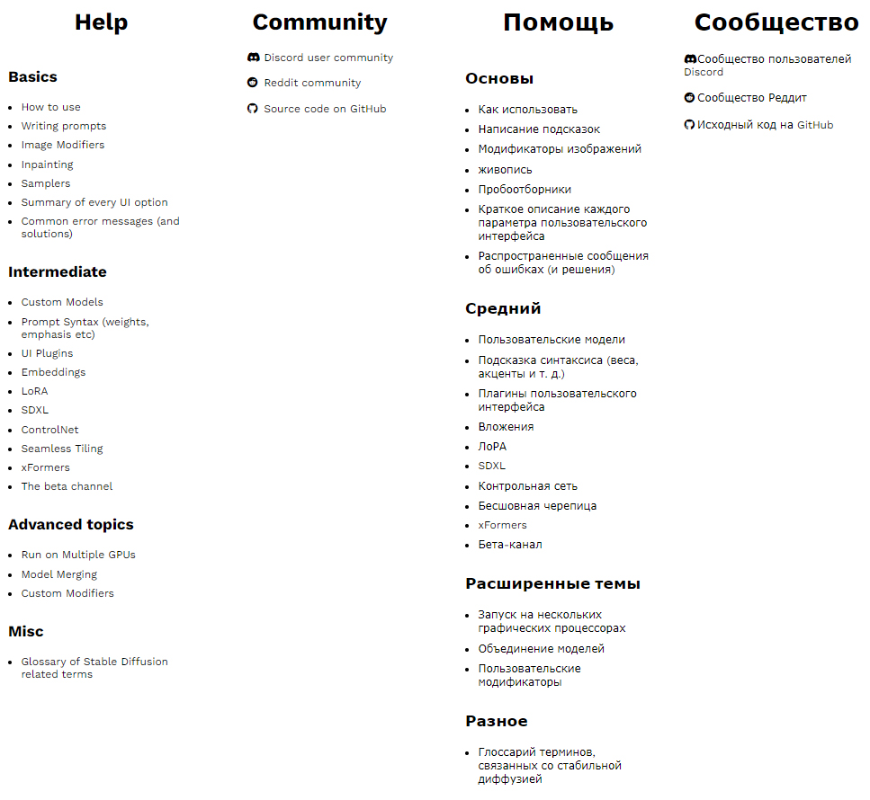 В этом окне, перейдя по одной из ссылок, вы можете самостоятельно изучить дополнительную информацию о работе с программой Easy Diffusion, а также узнать об установке дополнительных моделей и модулей (плагинов).