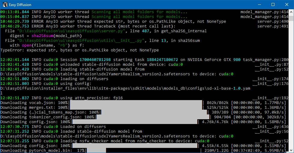 Если вы откроете окно серверной части приложения, то вы увидите, как работает система Easy Diffusion: