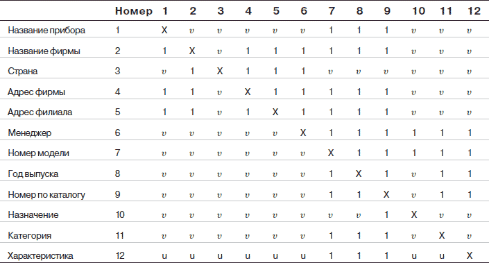 В этой таблице символы Х и и обозначают соответственно стороны «многие» и «один» в отношениях между реквизитами.