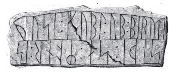 Рисунок 1. Сторона B рунического камня из Дании. Надпись читается как þusi: kubl: ub: biruti, что переводится как «Чародеем будет тот человек, который разрушит этот памятник».