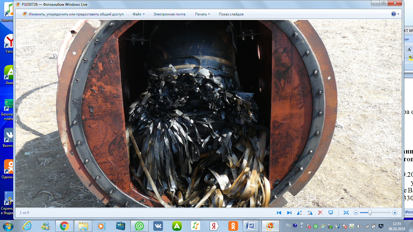 2. Повреждение осколками (при разрыве опорного изолятора) 3-х юбок фарфора опорного изолятора фазы "А".