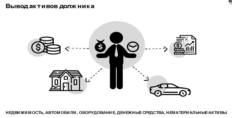 Стоит отметить, что банкротство компании в России не всегда происходит ввиду экономически обоснованных причин; так, недобросовестные участники хозяйственных отношений в процедуре банкротства видят возможность официального списания кредиторской задолженности, используя различные схемы по переводу бизнеса на «белые» компании с оставлением долговой нагрузки на «серых» фирмах, т. е. активы должников выводятся в предбанкротный период на новые юридические лица, а долги аккумулируются на старых фирмах, которые в последующем падают в банкротство. Делается это при помощи незаконных сделок, направленных на вывод активов.