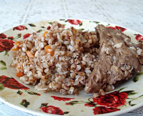 Консервы мясные с кашей рисовой вязкой