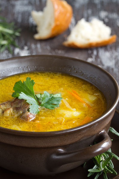 Говядину с луком репчатым (1/2), половиной кореньев (моркови, петрушки, сельдерея) залейте холодной водой и варите 2 ч. Через 1–1,5 ч после начала варки посолите, готовый бульон процедите.