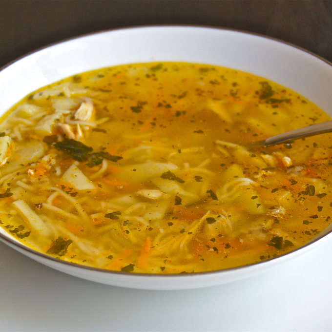 мясо птицы – 50 г, картофель – 55 г, лук репчатый – 15 г, морковь – 15 г, помидор свежий – 10 г, вермишель – 30 г, вода – 400 г, зелень петрушки – 5 г, соль, перец.