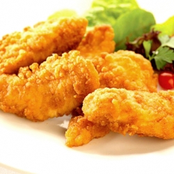 Маленькие кусочки будут готовы быстрее, крупные займут больше времени. Выньте готовые кусочки и разложите на бумажное полотенце, чтобы стёк лишний жир.