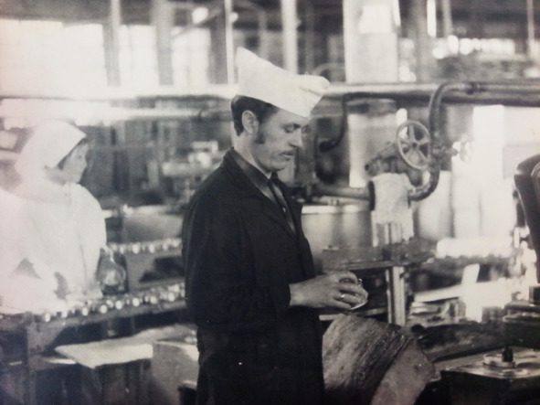 Фото 8. На рыбзаводе №90: проверка качества закатки банки с сайрой (основная продукция рыбокомбината) японской закаточной машиной.