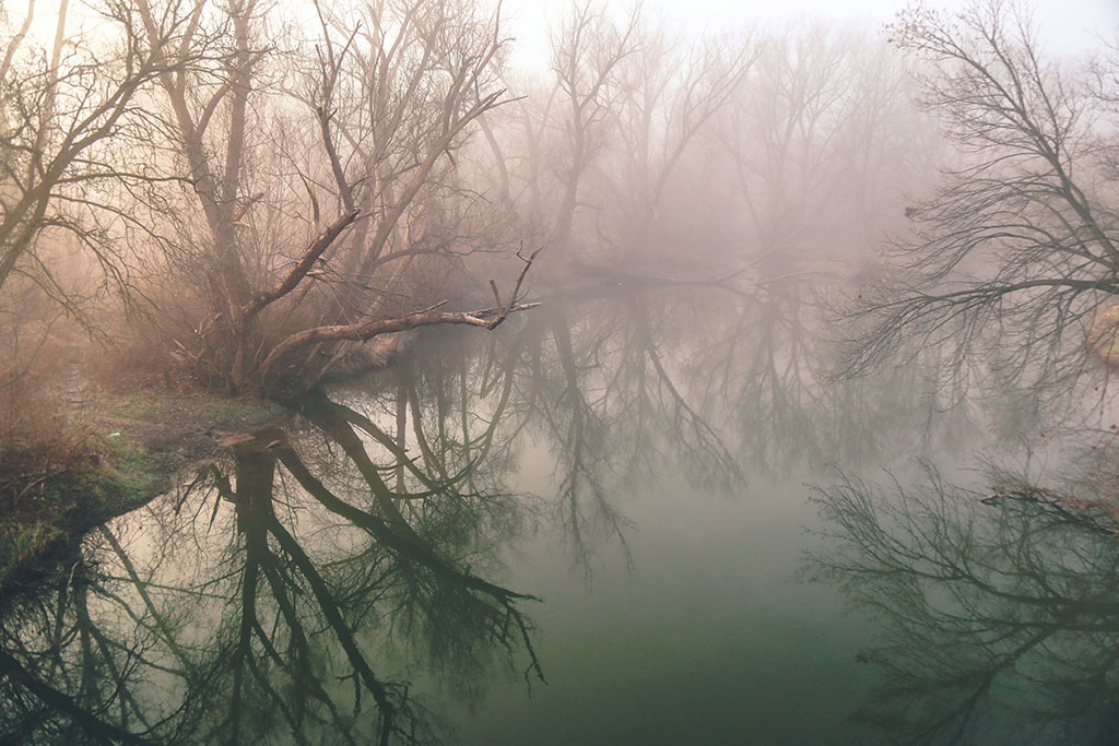Течение помогло переместиться на веслах на достаточное расстояние. Теперь мотором в тумане пронеслись по узким ерикам с кочками и корягами. Куда? Пена и течение – есть подтверждение, что мы не заблудились.