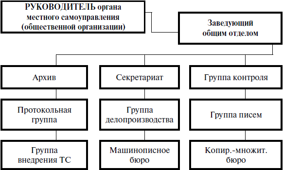 Примерная организационная структура общего отдела органа местного управления (власти) (аппарата (правления) общественной организации представлена на схеме 5.