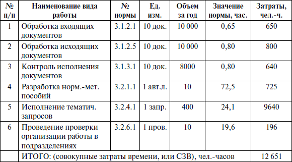 Определение численного состава службы ДОУ – по структурным подразделениям и в целом – рекомендуется производить на основе соответствующих расчетов. Выполнение таких расчетов следует производить исходя из реальных потребностей предприятия в документированной информации (учитывающих объем документооборота, основные виды управленческих документов, периодичность их применения в целях обеспечения повседневной деятельности предприятия и т. п.) на основе данных о нормативных затратах времени на выполнение тех или иных видов работ (действий).