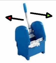 Отжимы для мопов бывает нескольких типов. Представляют собой небольшую емкость с ручкой куда помещается моп и с помощью системы ручного прессования осуществляется быстрый отжим мопы. Оператор выполняющий работы может регулировать силу отжима мопы при помощи рукоятки.