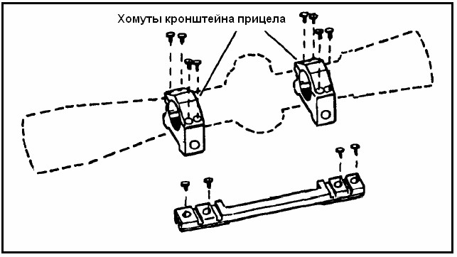 (4) Установите прицел и хомуты на базу.