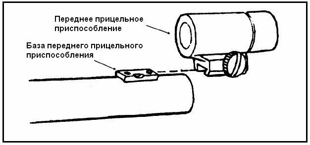 Чтобы установить переднее прицельное приспособление, необходимо выровнять выступы его крепления с базой, затем задвинуть приспособление на базу и затянуть винт (рис. 2-22).
