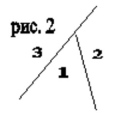 Однако, поскольку точка не имеет размеров, сама по себе она воспринимаема быть не может: точка может быть образована только в результате пересечения двух линий (см. рис. 2). Поэтому, чтобы точка была воспринимаема зрением, необходимо как минимум три цвета: два граничащих цвета дадут линию, протяженную в обе стороны до бесконечности, а третий цвет – ограничит эту линию другой линией.