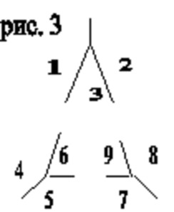 Что же касается связи ряда натуральных чисел с механизмом нашего восприятия, то она заключается в том порядке, в соответствии с которым мозг выстраивает треугольники, чтобы получить зрительный образ: первые девять чисел соответствуют алгоритму построения из ощущений треугольника, а числа от десяти и выше – алгоритму построения из треугольников зрительного образа. Причем алгоритм построения из треугольников образа тот же, что и алгоритм построения треугольника из цветовых полей: три элемента составляют четвертый (как три цвета – точку); потом три новых элемента составляют следующий (три точки – треугольник), в который входит уже девять первоначальных элементов; потом объединяются три фигуры, состоящие из 27 элементов. И т.д. В итоге вся форма оказывается структурирована таким образом, что каждая ее часть одновременно и включает в себя три элемента, и сама является частью целого, включающего три элемента.