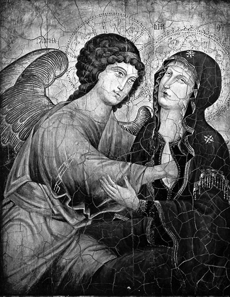 На другой кощунственной иллюстрации Крафт, стилизованной под византийскую и русскую религиозную живопись (от Владимирской Богоматери до «Благовещения» Андрея Рублева), Гавриил рукою крадется за пазуху девы Марии (иллюстрация, явно отсылающая к стиху «Ея груди дерзнул коснуться он» (с. 19), переведенному Арндтом: «The Emissary gently stroke her breast», p. 318)227: