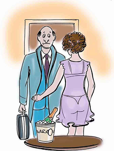 Муж приоделся вечером, как будто на свиданку;Жена, вестимо, заподозрила подлянку:Куда собрался, на ночь глядя? Коль на то пошло,Ведь после нашей свадьбы и полгода не прошло!Пойми ты, сам бы рад сейчас поспать бы,Но я назначил встречу ей ещё до свадьбы…Семейная жизнь