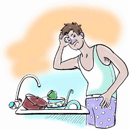 Муж утром говорит жене: Что за дела, хотел бы знать?Встаю я ночью как всегда поссать,Доковылял кой-как, с похмелья всё болит,А в раковине ку́хонной посуда грязная стоит!