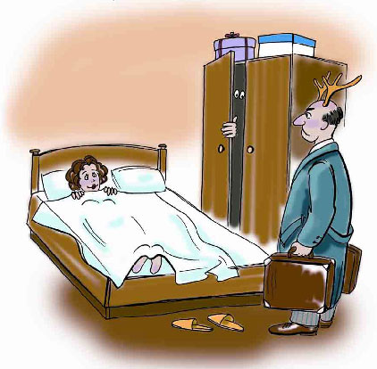 Любовь слепа, но не глухая, папа,Купи таблеточки от храпа!Подозрительная жена