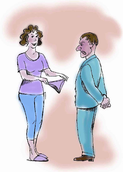 Муж поздно вечером в подпитии идёт домой.Жена, учуяв алкоголь, участливо качает головой:Опять с банкета, милый? – Да, моя отрада…Увидев на щеке у мужа след губной помады,По-детски умиляется: Опять коллеги целовали?Да, да, моя догадливая краля…Заботливо снимает с мужа свитер, брюки и часы,Вдруг – ба! – на благоверном женские трусы!Супруг склонил безвольно голову на грудь:Ну, ты же умница… Придумай, что-нибудь…Попытка сговора
