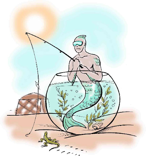 Пустыня: дюны и песчаные барханы.Жара. Колючка. Суховей. Вараны.Большая юрта, посреди аквариум стоит,А в нём тоскует Ихтиандр – гибрид.Служанка в парандже: Вай, Ихтиандр-акааа,Покюшать будем бишбарма-ак, шашлыка-а! —Вот сука! – плавником себя ударил по плечу:Я – Ихтиа-андр!!! Я ры-ыбы хочу-у!!!
