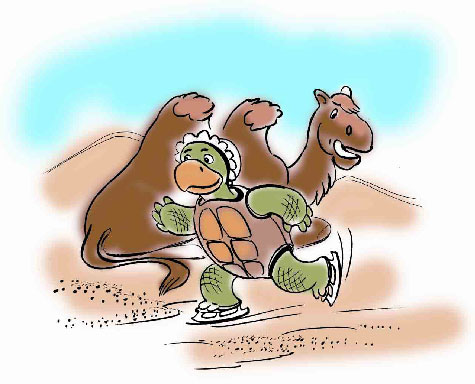 Верблюд. Пустыня. Черепаха медленно ползёт:Верблюд, давно у вас здесь гололёд? —В такой-то зной! Ты что, рехнулась, мать? —Тогда зачем дорогу посыпать?
