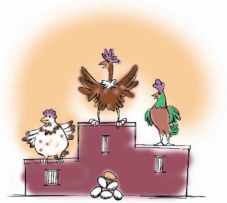 У Курицы счастливое лицо:Снесла пятикилограммовое яйцо!Бригада журналистов сразу появилась:А как у Вас такое чудо получилось?Потупилась: Готового ответа нет…Вообще-то, это мой секрет! —А Ваши планы? – Планы налицо:Снести семикилограммовое яйцо!Понятно, после обратились к Петуху:Вообще-то Ваши достиженья на слуху!А как у Вас такое чудо получилось?Потупился: Готового ответа нет.Простите, это мой секрет…А Ваши планы? – Планы, вашу мать?Да морду Страусу надрать!Петух-ревнивец