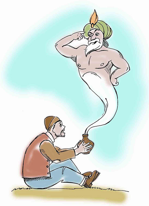 Еврей потёр старинный замусоленный кувшин,Оттуда сразу появился Джин:Я выполню любые три твоих желания, говори! —Так, дача в Каннах! Баксов… миллиарда три!Девчонок смачных подгони, усатое создание!Учти, что это – только первое желание…Начальство нужно уважать