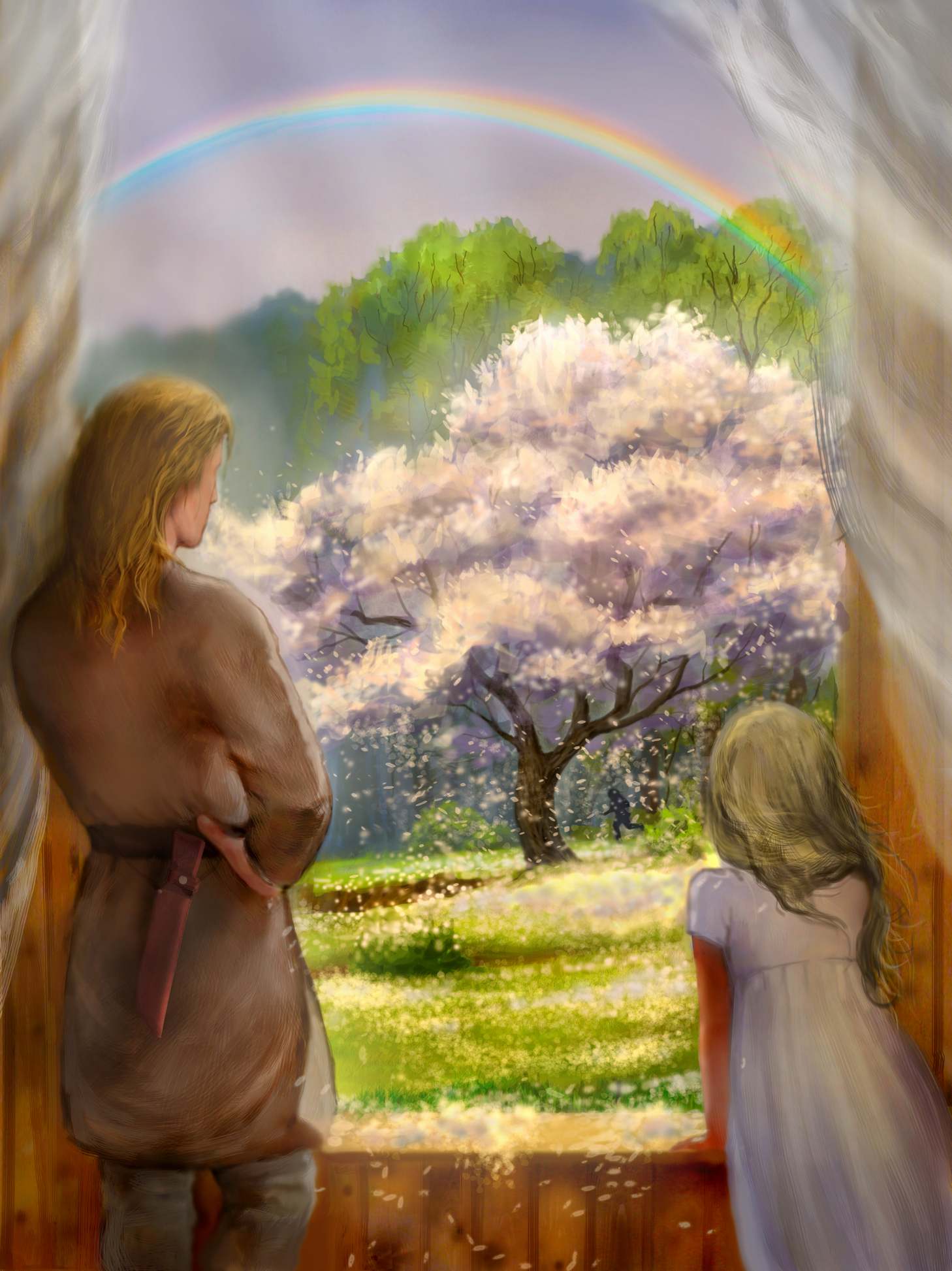 Лаэтан высунулась в окно по пояс: огромное старое, никогда не цветущее дерево, которое росло возле дома, теперь сплошь было покрыто бутонами и цветами, которые, под напором морского ветра легко роняли свои белоснежные лепестки. Они, словно маленькие лодочки, кружились в воздухе и медленно опадали вниз, засыпая и траву, и землю толстым пушистым слоем.