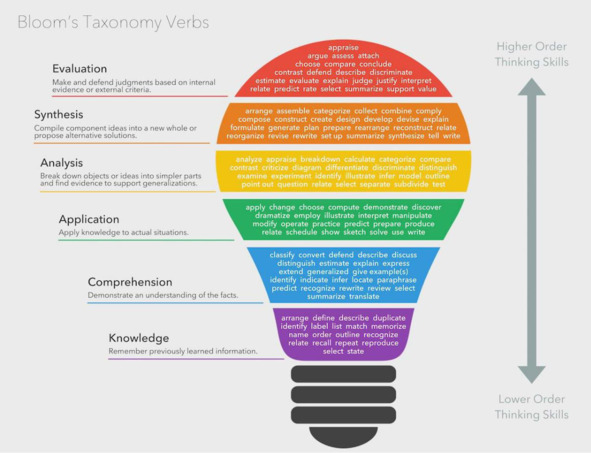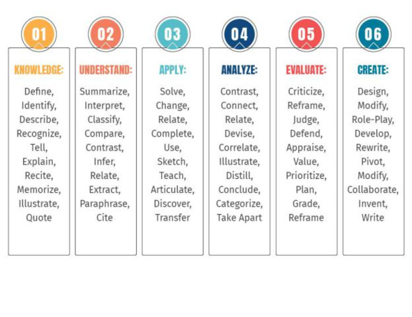 Many people also call the analysis, synthesis/create, and evaluation categories «problem-solving.»