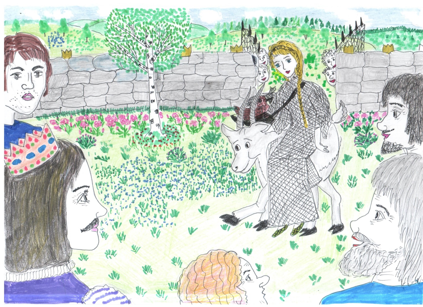 Села боком на козленка и поехала к царю.