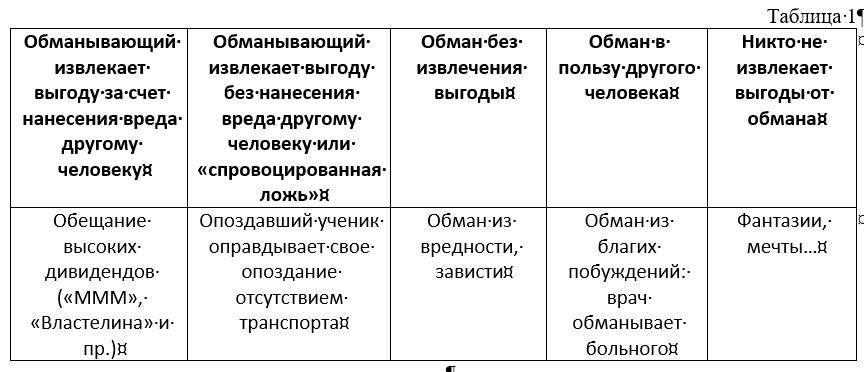 Ю.В. Щербатых предложил две различные классификации3. В одной из них основанием для классификации служит наличие или отсутствие выгоды от искажения информации. В ее основу положен «прагматический» подход, т.е. обращается внимание на то, кто в основном извлекает выгоду из неистинного сообщения: