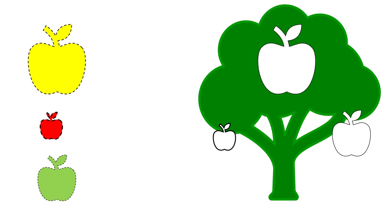 При выполнении задания можно вырезать яблоки и приложить к трафарету на дереве.